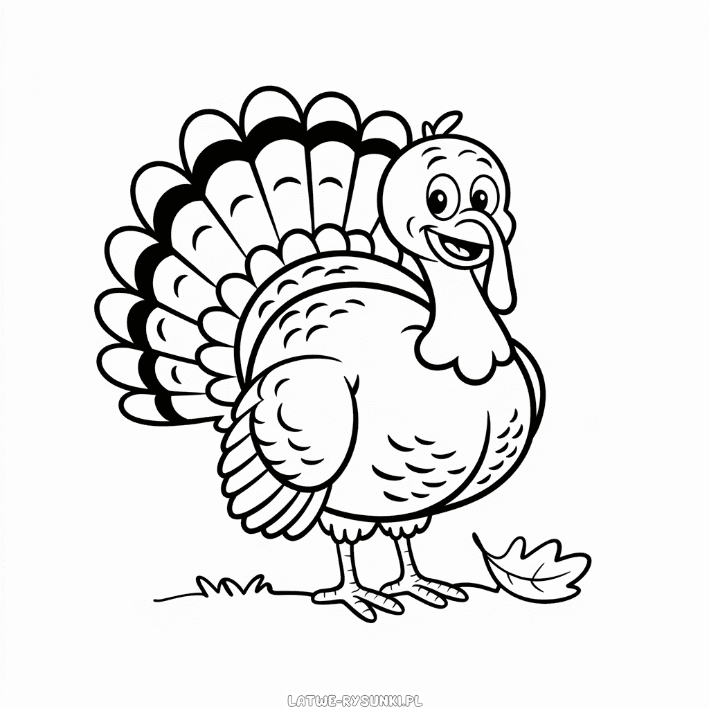 Prosty rysunek animowany film o indyku do pobrania za darmo, przedstawiający sympatycznego indyka z popularnej bajki, który z pewnością rozbawi dzieci i zachęci do twórczej zabawy. Kolorowanka do odrysowania lub pokolorowania dla dzieci. Wysokiej jakości szablon w czerni i bieli, zoptymalizowany do druku w formacie PDF A4.
