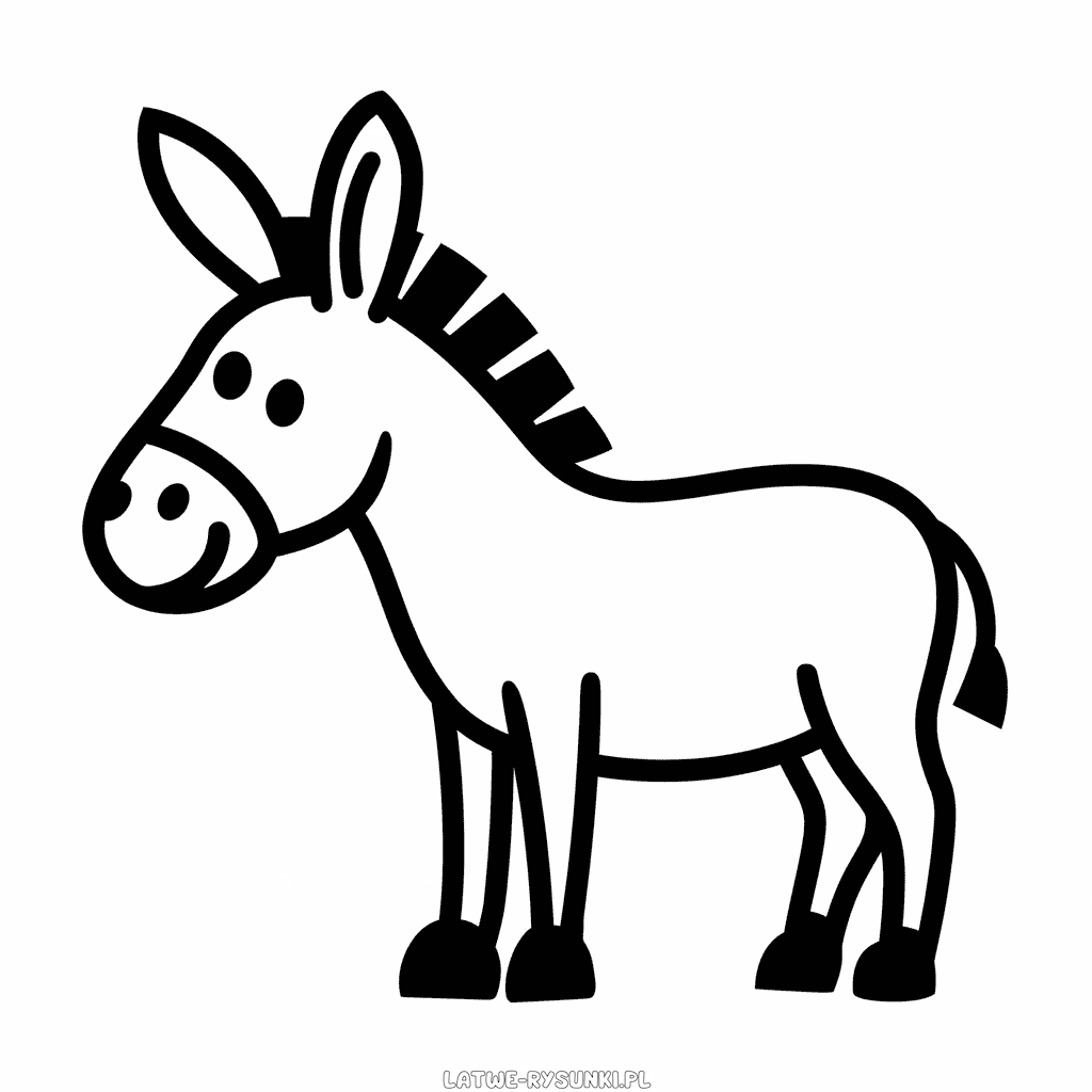 Prosty osioł do pobrania za darmo, idealny do nauki rysowania dla dzieci oraz początkujących artystów. Kolorowanka do odrysowania lub pokolorowania dla dzieci. Wysokiej jakości szablon w czerni i bieli, zoptymalizowany do druku w formacie PDF A4.