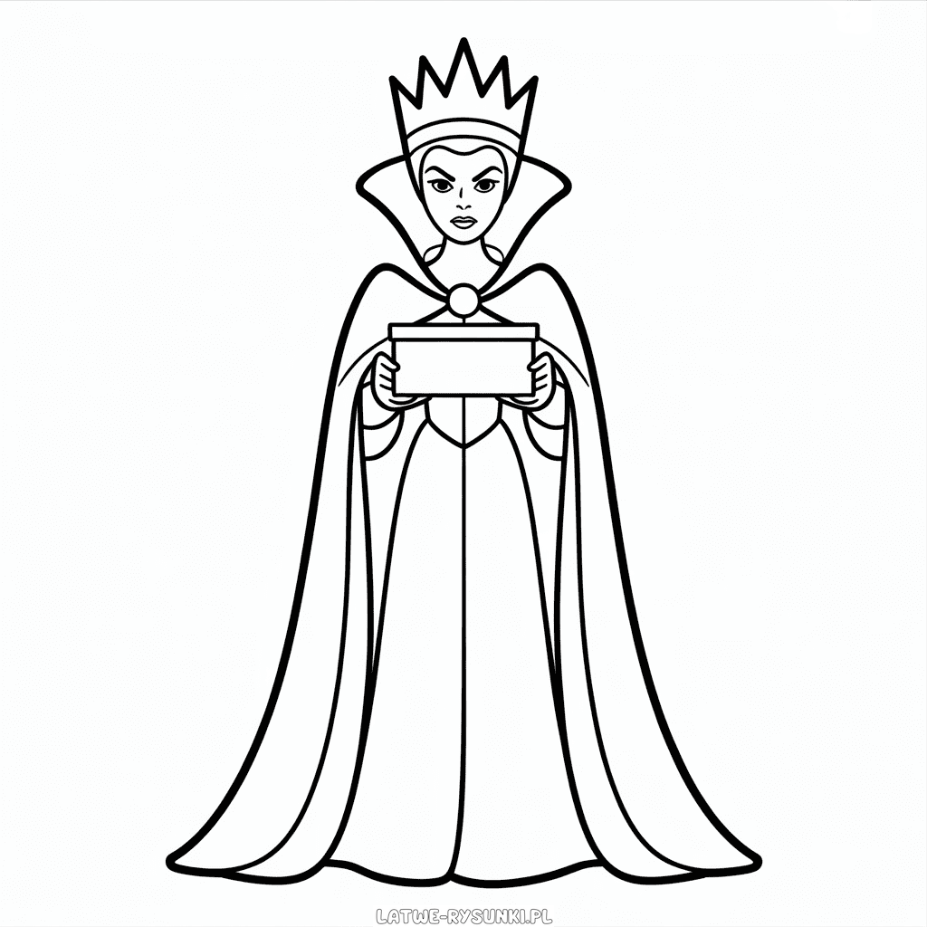Prosty rysunek Zła Królowa Królewna Śnieżka do pobrania za darmo, przedstawiający słynną postać z bajki w stylu Disney, idealny dla młodych miłośników opowieści. Kolorowanka do odrysowania lub pokolorowania dla dzieci. Wysokiej jakości szablon w czerni i bieli, zoptymalizowany do druku w formacie PDF A4.